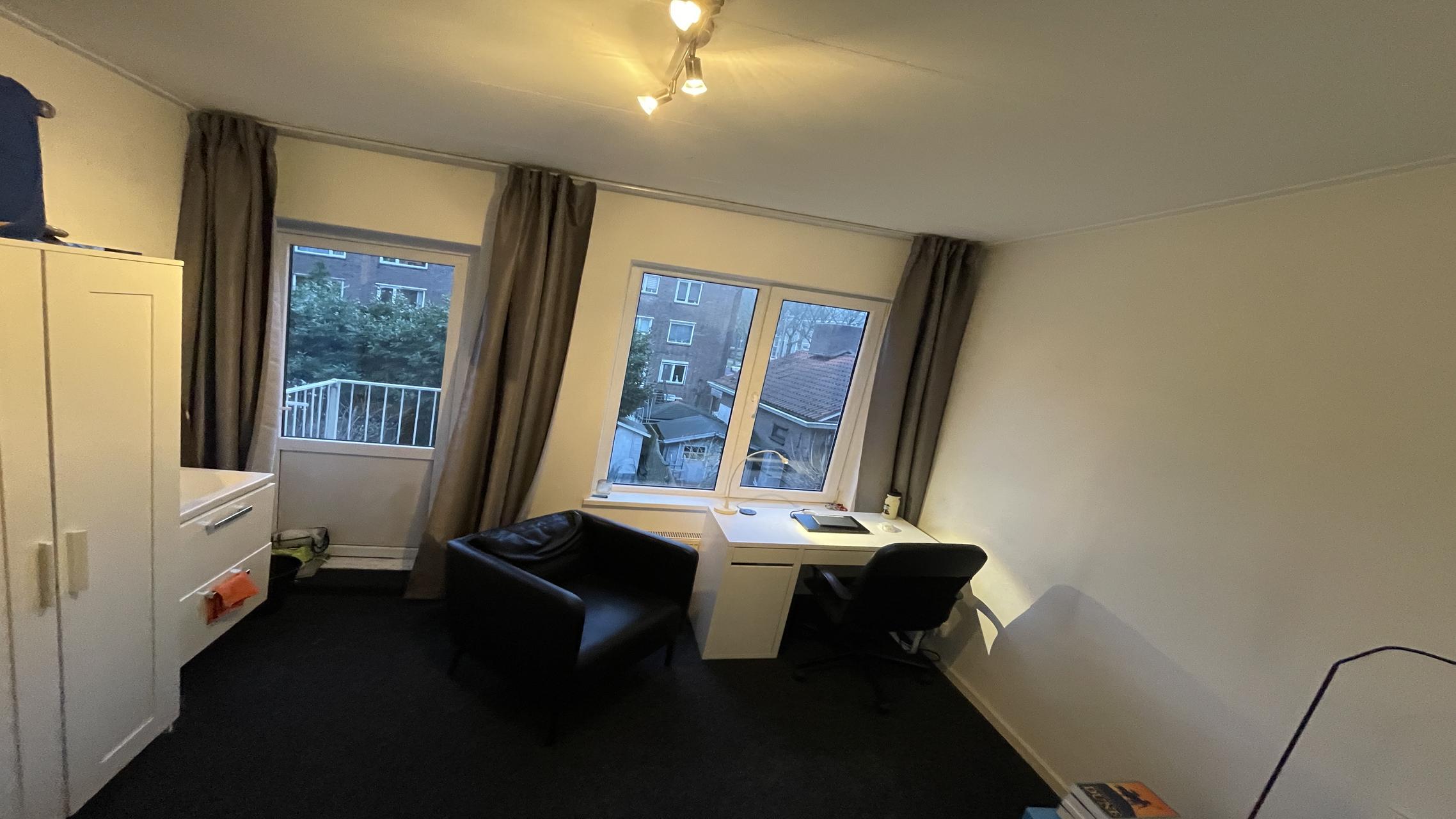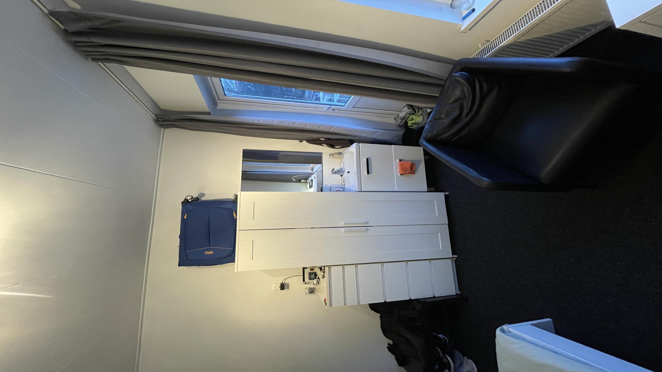 This fully furnished student room comes with a bed, desk, chair, wardrobe, cupboard, and a wash basin with hot and cold water. The shared facilities include a fully equipped kitchen with a dishwasher and washing machine, as well as a bathroom, shared with two other tenants (male). The rent includes gas, electricity, water, and internet, with local taxes excluded.